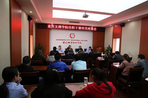 3月15日下午,学院在博学馆607会议室召开重庆文理学院挂职干部皮锋同志的欢送座谈会。重庆文理学院党委副书记、纪委书记李德全,纪委副书记蒋礼文,教工部副部长钱闾建,挂职干部皮锋,学院党委书记刘波,院长江洪,副院长文斌,党政办、组织人事处、宣传部、学工部负责人,纪检监察审计处等相关工作人员参加座谈会。会议由江洪同志主持。
