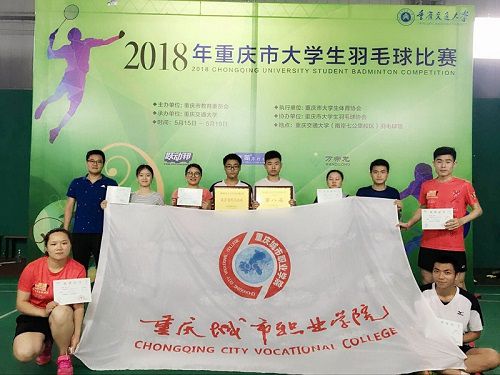 5月15—20日,重庆市2018年大学生羽毛球和武术比赛分别在重庆交通大学和重庆师范大学举行。学院参赛队伍在唐流泉、张燕和邓清波老师的带领下,学生发扬顽强拼搏、团结协作的城职精神,在羽毛球比赛赛项中,吴洪霞获得女单第四名,黄琼、舒正东获得混双第五名,全鹂燕获得女单第七名、蒋沪臣,唐大松获得男双第八名,并获得团体总分第八名的佳绩,是学院在该项目的一次突破。同时还获得市教委颁发的“体育道德风尚奖”称号。
