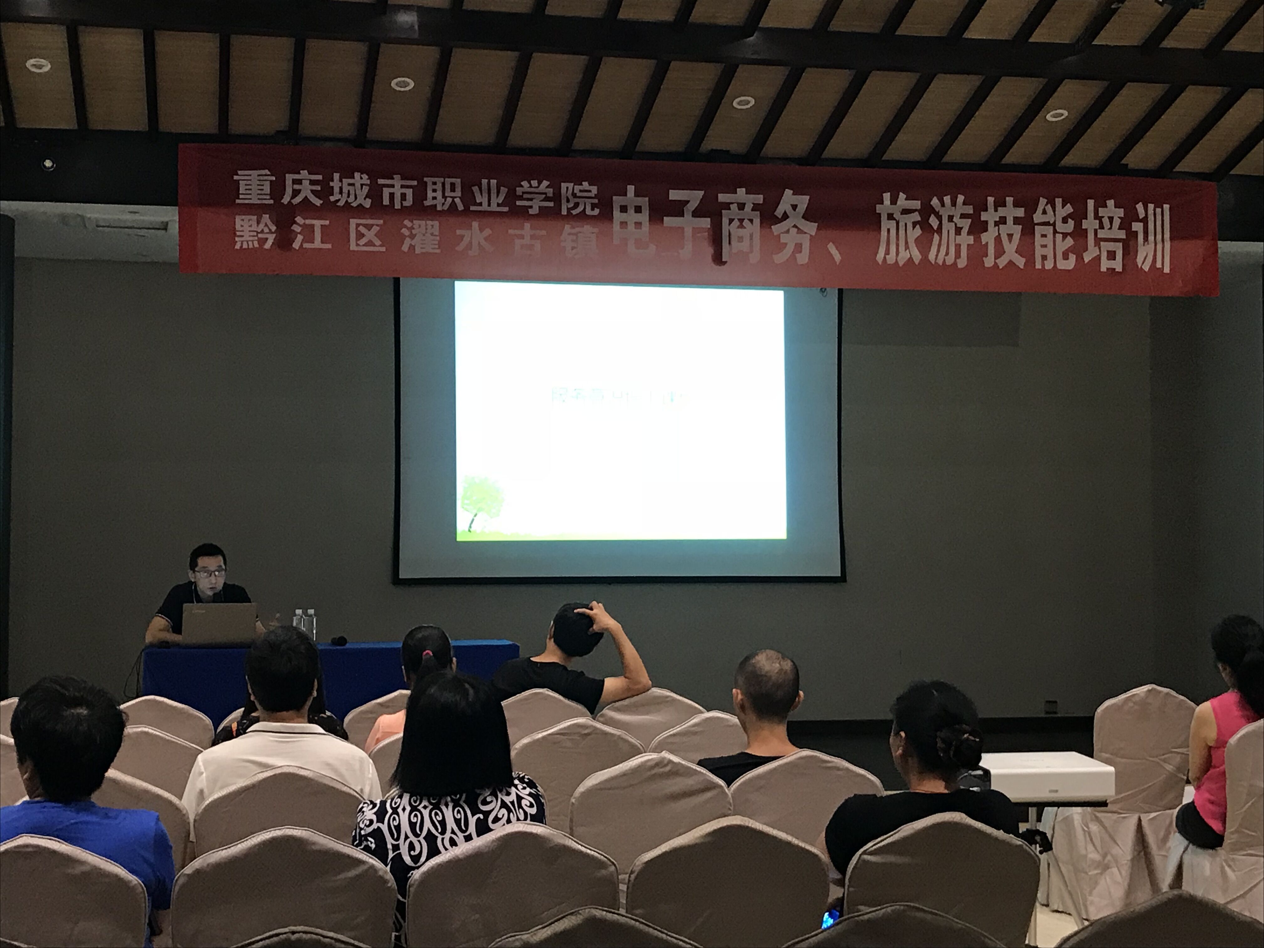 为提升学院社会服务功能,创建良好社会声誉,2018年7月9日—-10日,学院继续教育学院联合工商管理系和旅游管理系,前往黔江区濯水古镇,为当地“客栈联盟”下属的35家酒店客栈商家进行电子商务、旅游技能的培训。