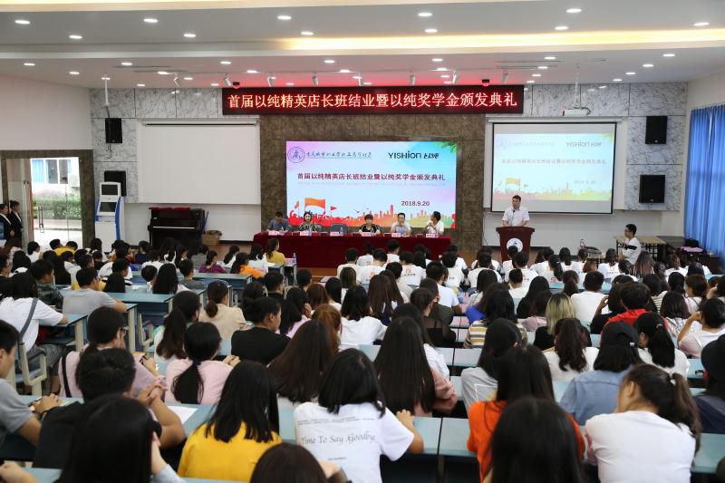 9月20日下午,学院工商管理系首届“以纯精英店长班”结业暨以纯奖学金颁发典礼在学术报告厅举行。学院副院长刘仲全,教学工作部部长徐伟,学工部部长朱三彬,以纯重庆办事处副总经理扈晓,人力资源总监李艳,工商管理系全体教师,首届“以纯精英店长班”学员及部分学生参加典礼。工商管理系主任胡延坤主持仪式。