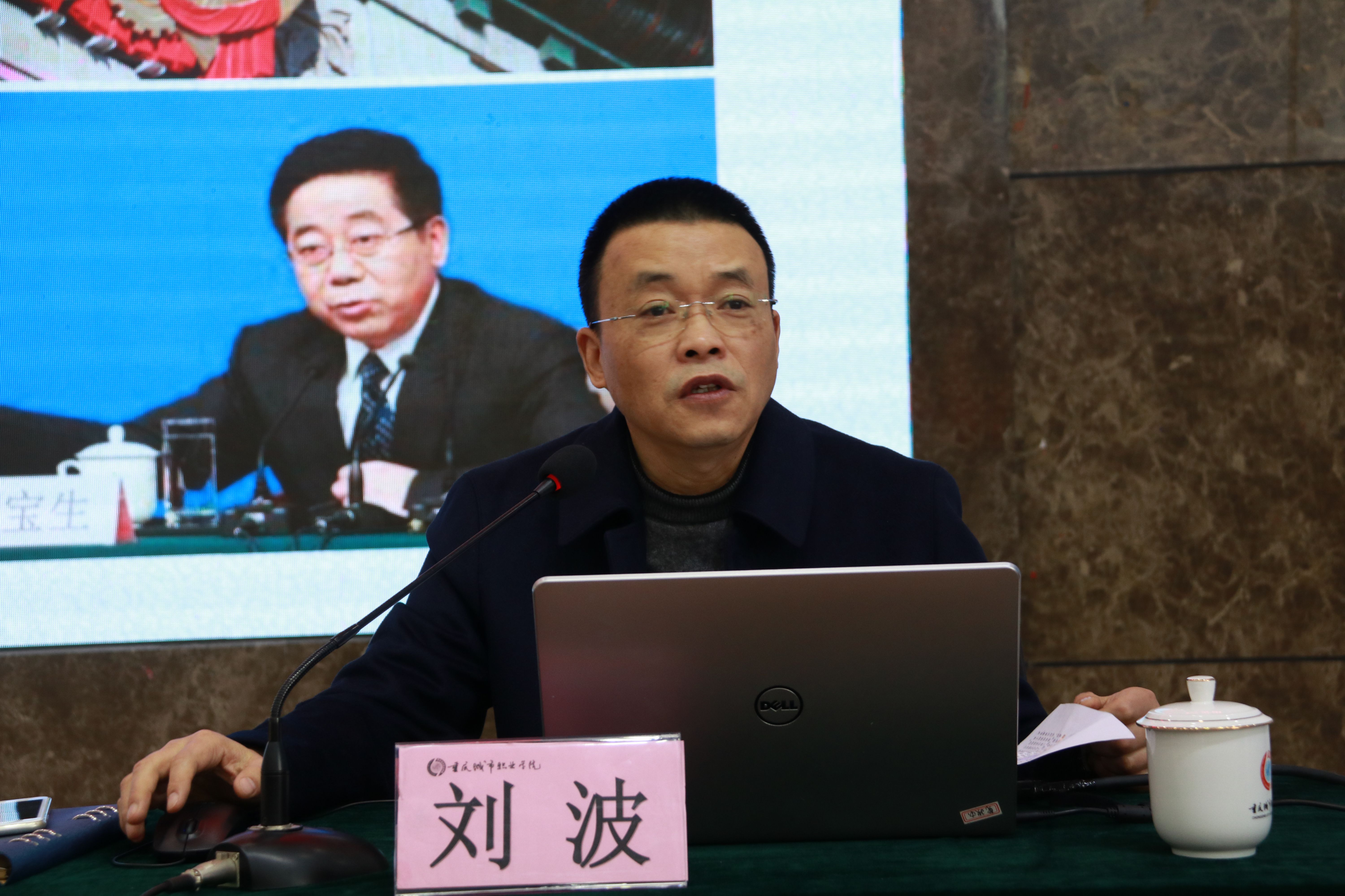 刘波同志强调,要深入学习宣传贯彻全国教育大会精神,以习近平新时代中国特色社会主义思想为指导,把全国教育大会的各项重大决策部署落实落地,更好地用以武装头脑、指导实践、推动工作,努力培养出更多更好的、能够满足党和国家、人民、时代需要的高素质、高技能人才,为职业教育事业作出更大的贡献。一要把握“四转”工作方法,通过扎扎实实地学习,深化思想认识,提高政治站位,准确理解科学内涵和精髓要义;二要开展好“五个行动”,学院发展正处于关键期,未来要打好三张牌:与科大讯飞合作共建大数据学院,做强大数据专业群;与永川区政府、西门子合作共建永川智能制造公共实训基地,做优智能制造专业群;与云华教育集团合作共建航空学院,做特航空专业群,形成办学特色;三要建立“五个清单”,对标党中央对新时代教育的要求,找出差距和问题症结,努力补齐四个短板:干部和教师队伍不足,学生规模较小,校园面积不够,房屋建筑面积不够。