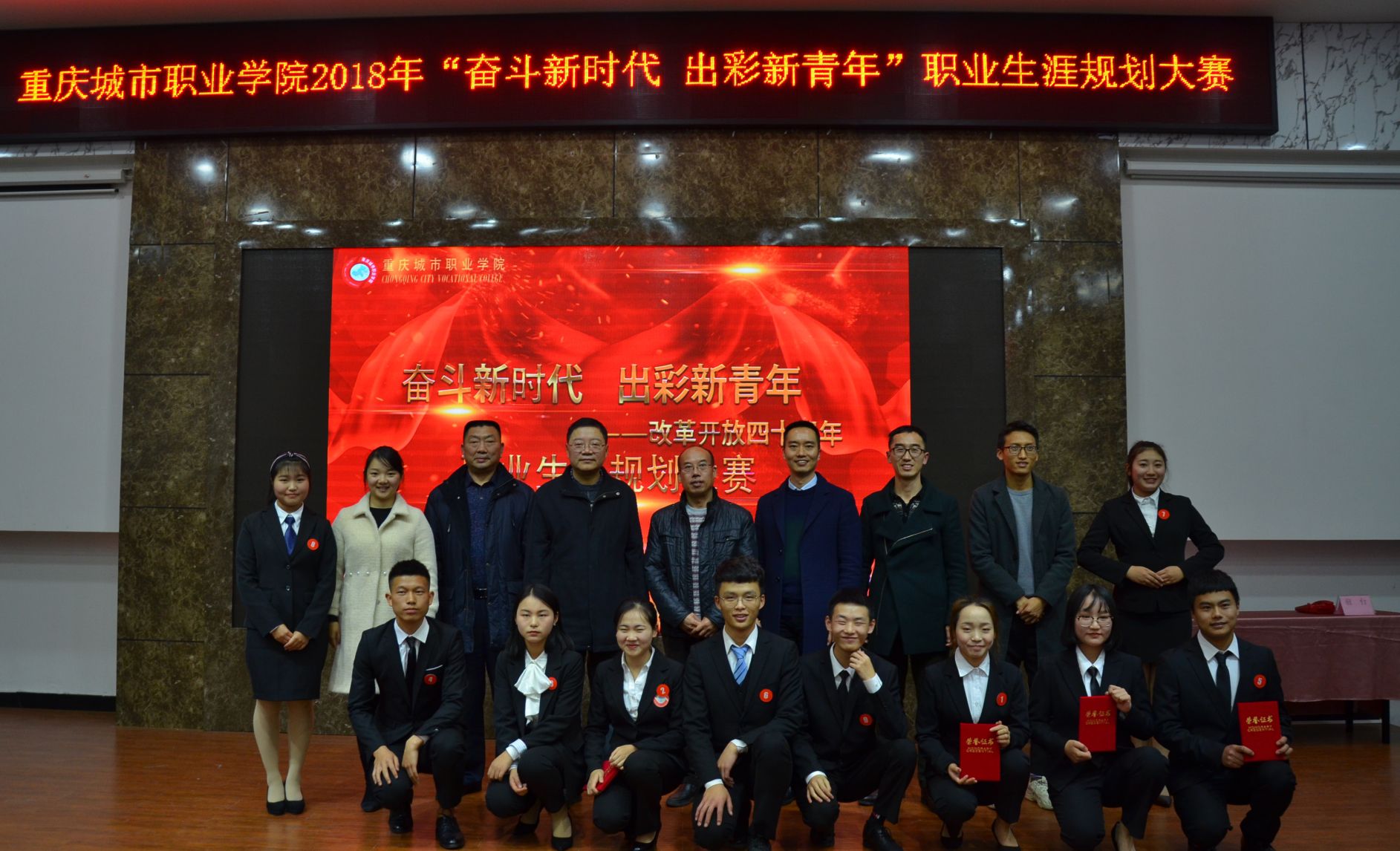 为引导大学生树立正确的职业规划意识,进一步认识自我和了解就业环境,12月5日晚,学院在学术报告厅开展“奋斗新时代,出彩新青年”职业生涯规划大赛。大赛邀请了重庆文理学院学生工作部副部长、招生就业处副处长周清,重庆科创职业学院就业指导中心主任、招生办副主任左陈,重庆财经职业学院招就处就业主管曾祥武到校指导。学院副院长文斌,学生工作部副部长朱三彬、团委副书记彭颖、组织人事处考核科科长杨春、旅游管理系团总支书记杨婷婷出席活动,各二级院系选手亲友团、观众共计300余人观看比赛。