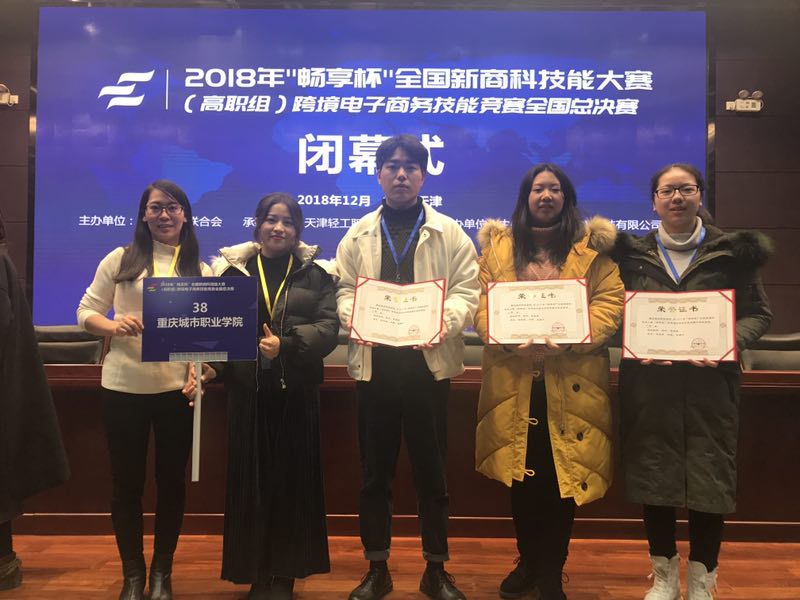 1223日,由中国商业联合会主办的2018年“畅享杯”全国新商科技能大赛(高职组)跨境电子商务技能竞赛全国总决赛在天津轻工职业技术学院举行。在与全国66所高职院校同台竞技中,学院工商管理系陈杰、陈宝英老师指导学生徐金森、刘颖、张瀚文勇夺全国团体二等奖。