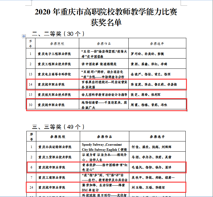 近日,重庆市教委公布2020年高职院校教师教学能力比赛获奖名单,做爱视频