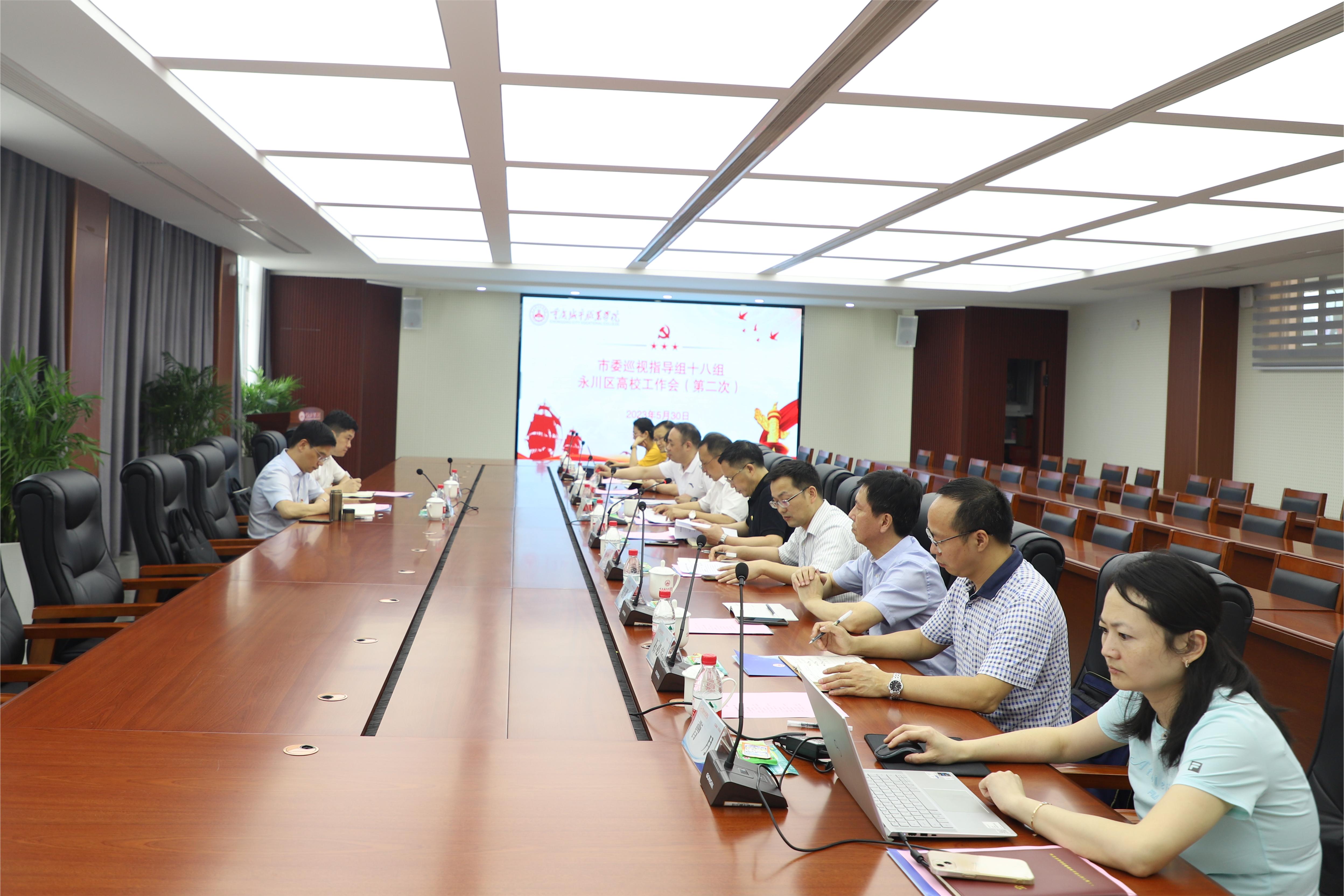 5月30日上午,市委巡回指导十八组永川片区高校工作会(第二次)在做爱视频 光华楼勤勉厅召开。副组长陈劲主持会议并讲话。指导组成员梁宇,重庆文理学院党委副书记、校长黄伟九,重庆财经职业学院党委书记胡尚全,重庆水利电力职业技术学院党委副书记陈敏,做爱视频 党委书记张绍荣,副校长刘仲全参加会议。