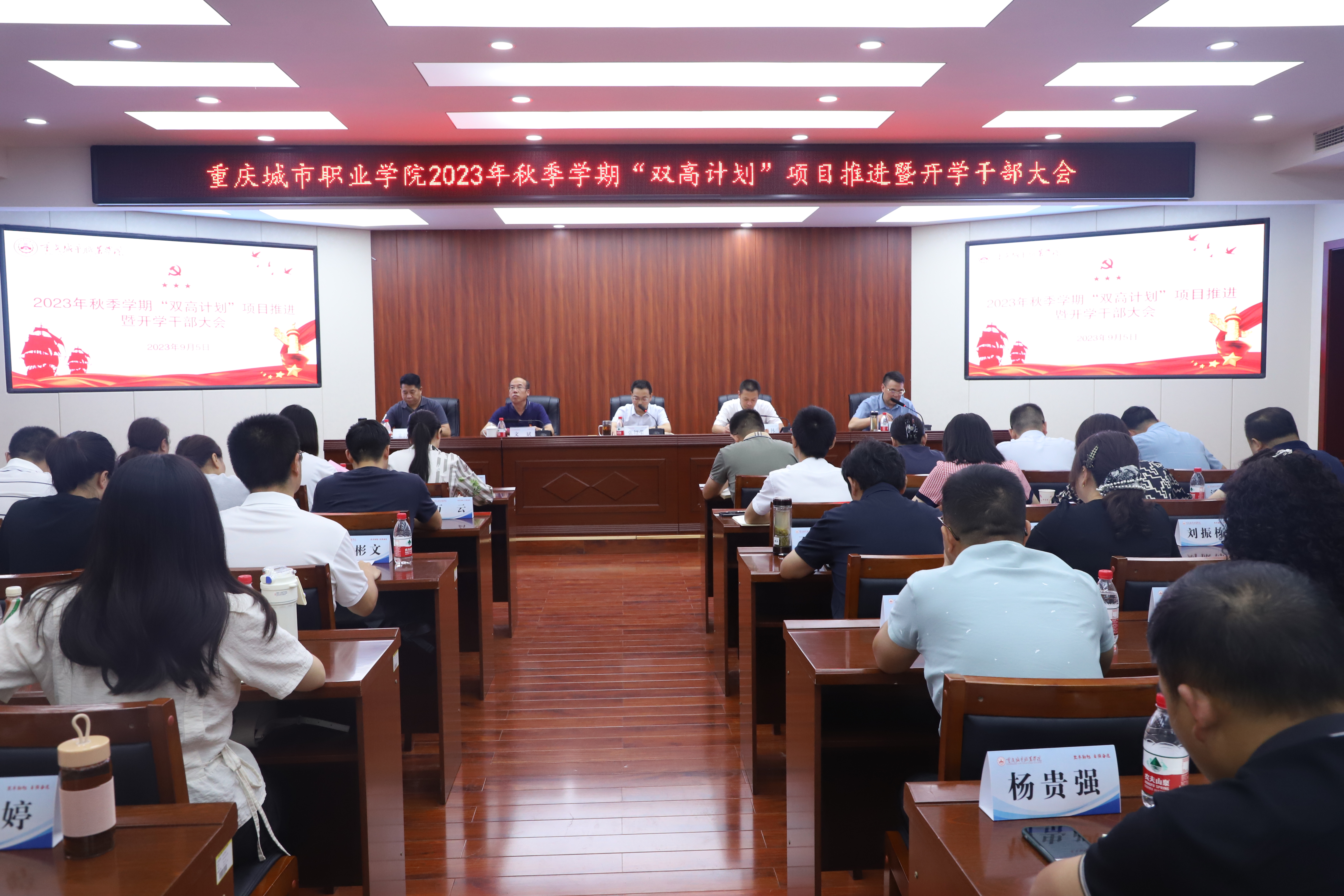 9月5日下午,做爱视频 在博学馆510会议室召开2023年秋季学期“双高计划”项目推进会暨开学干部大会。党委书记张绍荣主持会议,党委副书记、校长唐玉林,校领导文斌、刘仲全、朱传书出席会议,全体处科级干部、正高职称教师代表、新引进高层次人才、全体博士、党支部书记和辅导员参加会议。