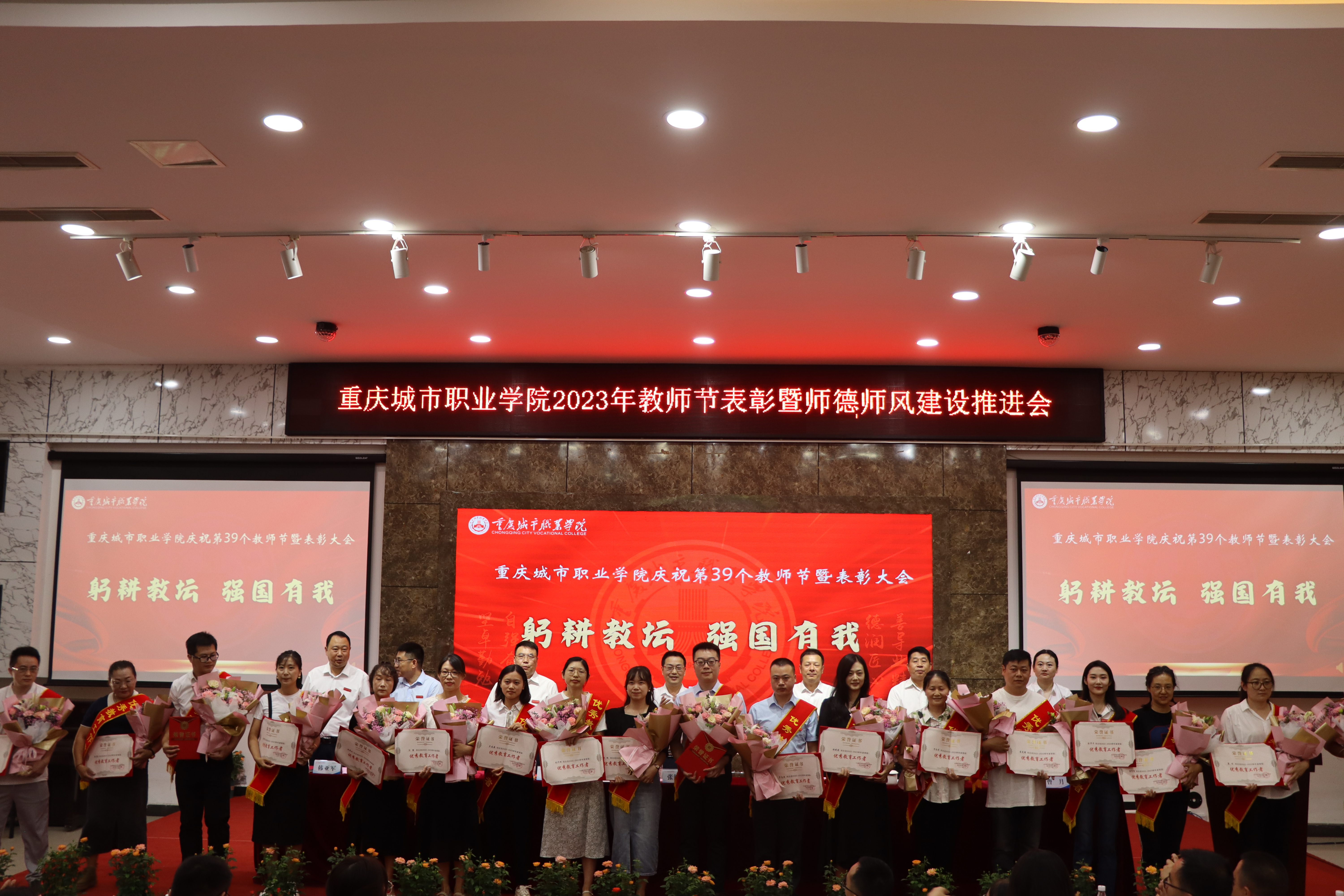 全体党委班子成员为优秀教师代表、优秀教育工作者代表、优秀辅导员代表、科研成果奖、教学突破奖等72名优秀个人和“城市匠星树人奖”获奖个人及团队代表进行颁奖。