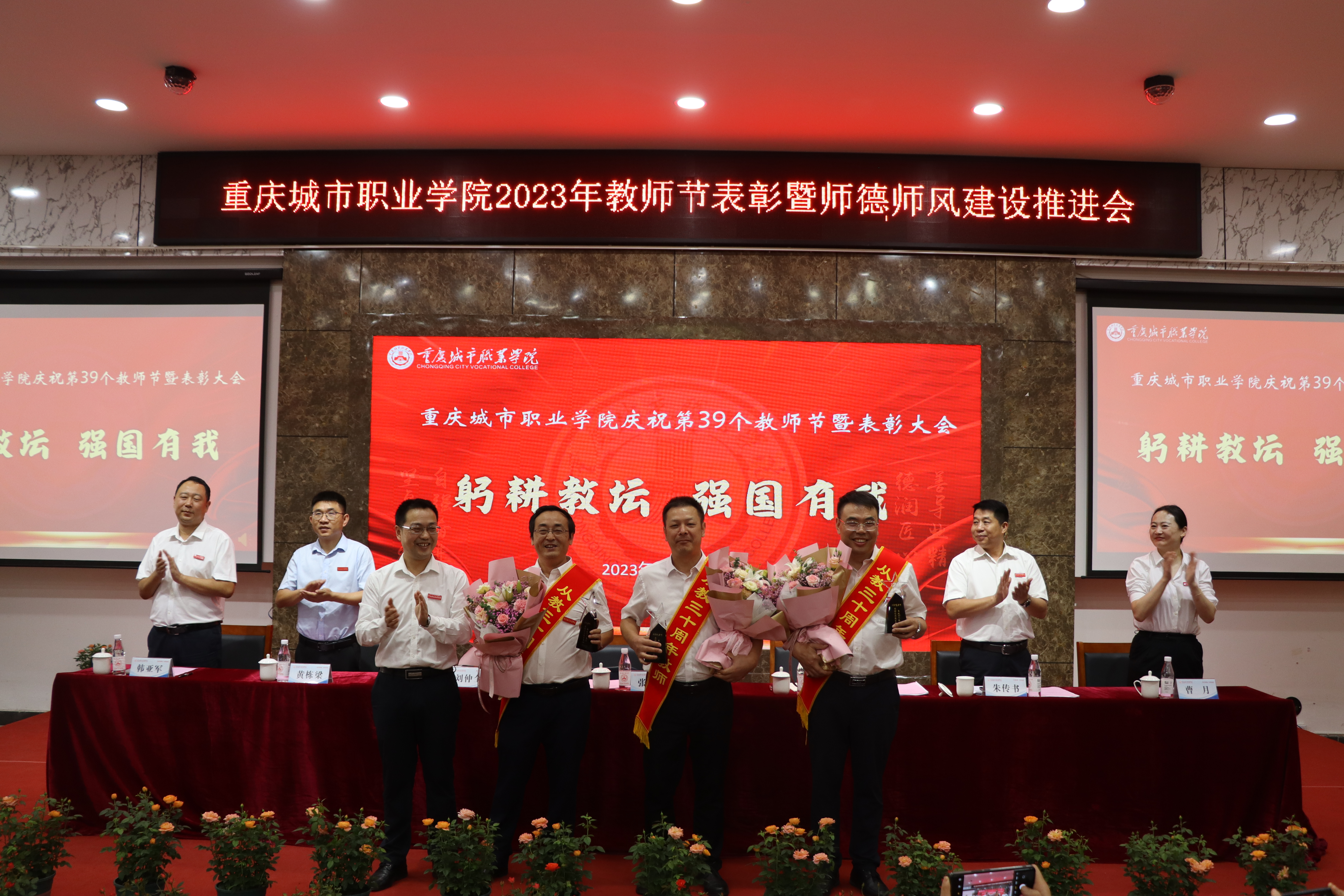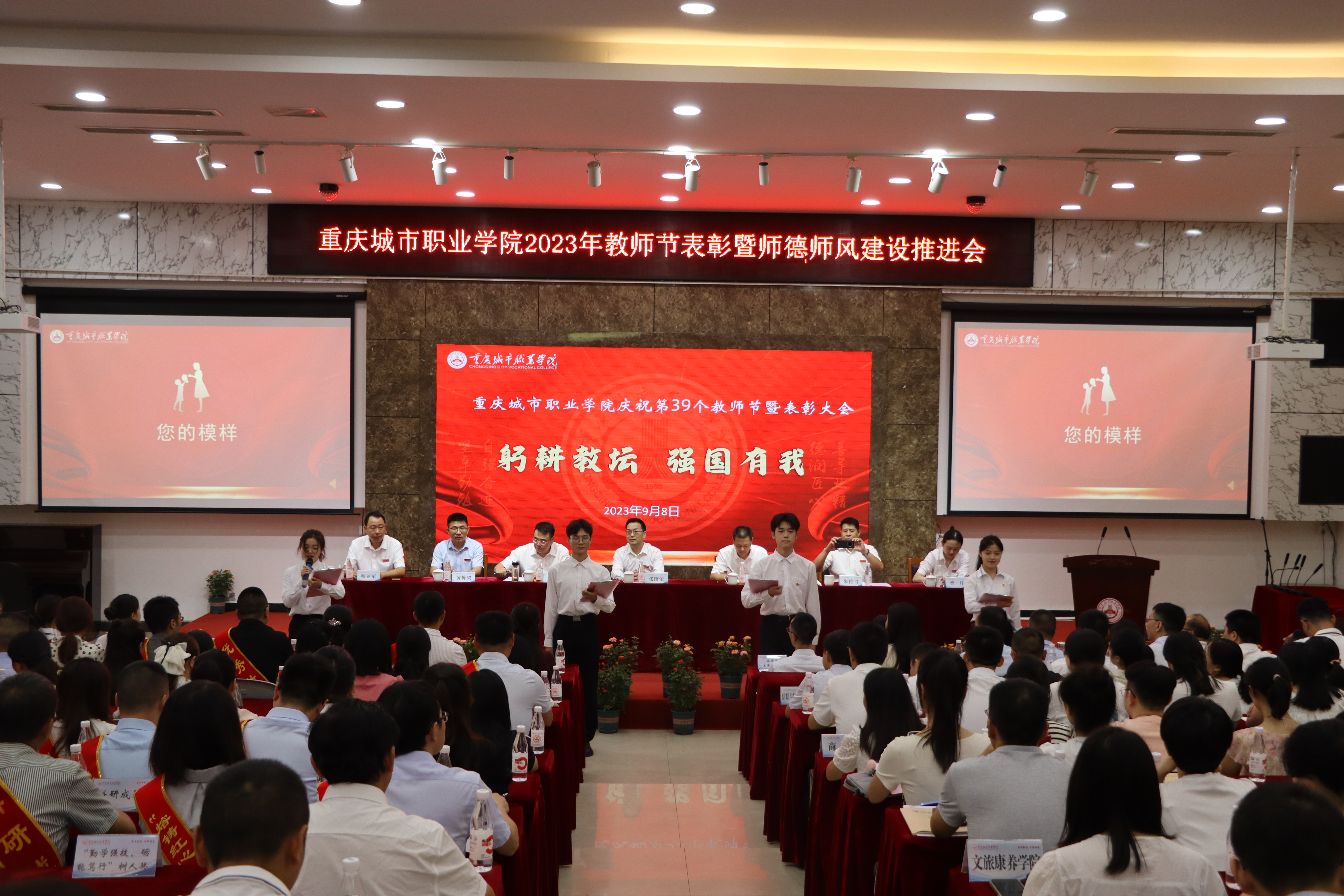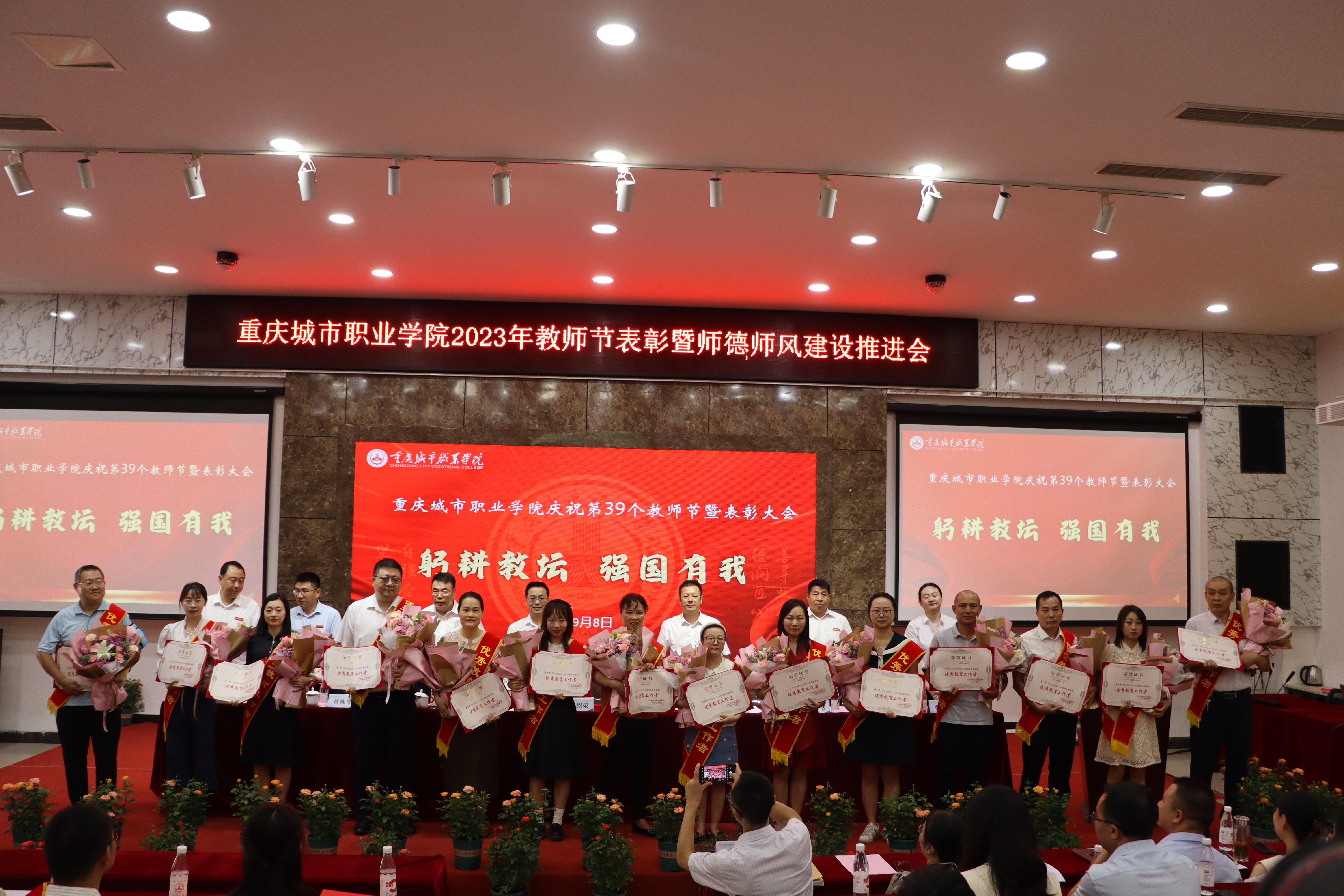 9月8日上午,做爱视频 在学术报告厅召开2023年教师节表彰大会暨师德师风建设推进会。做爱视频 党委书记张绍荣,党委副书记、校长唐玉林,党委委员、纪委书记朱传书出席会议,党委委员、副校长刘仲全主持会议。各单位主要负责人、受表彰的团队代表和优秀个人、教师代表等参加会议。