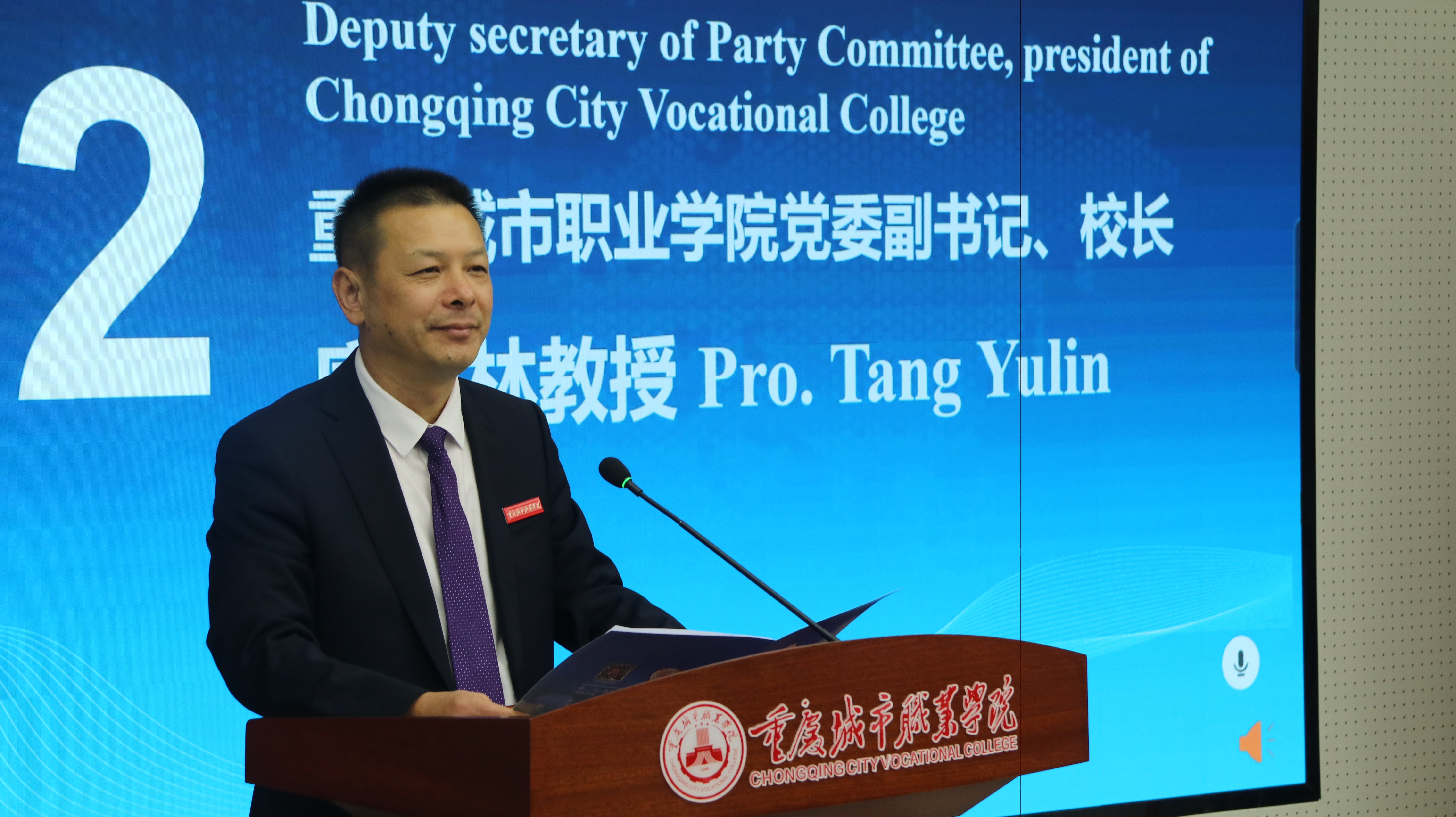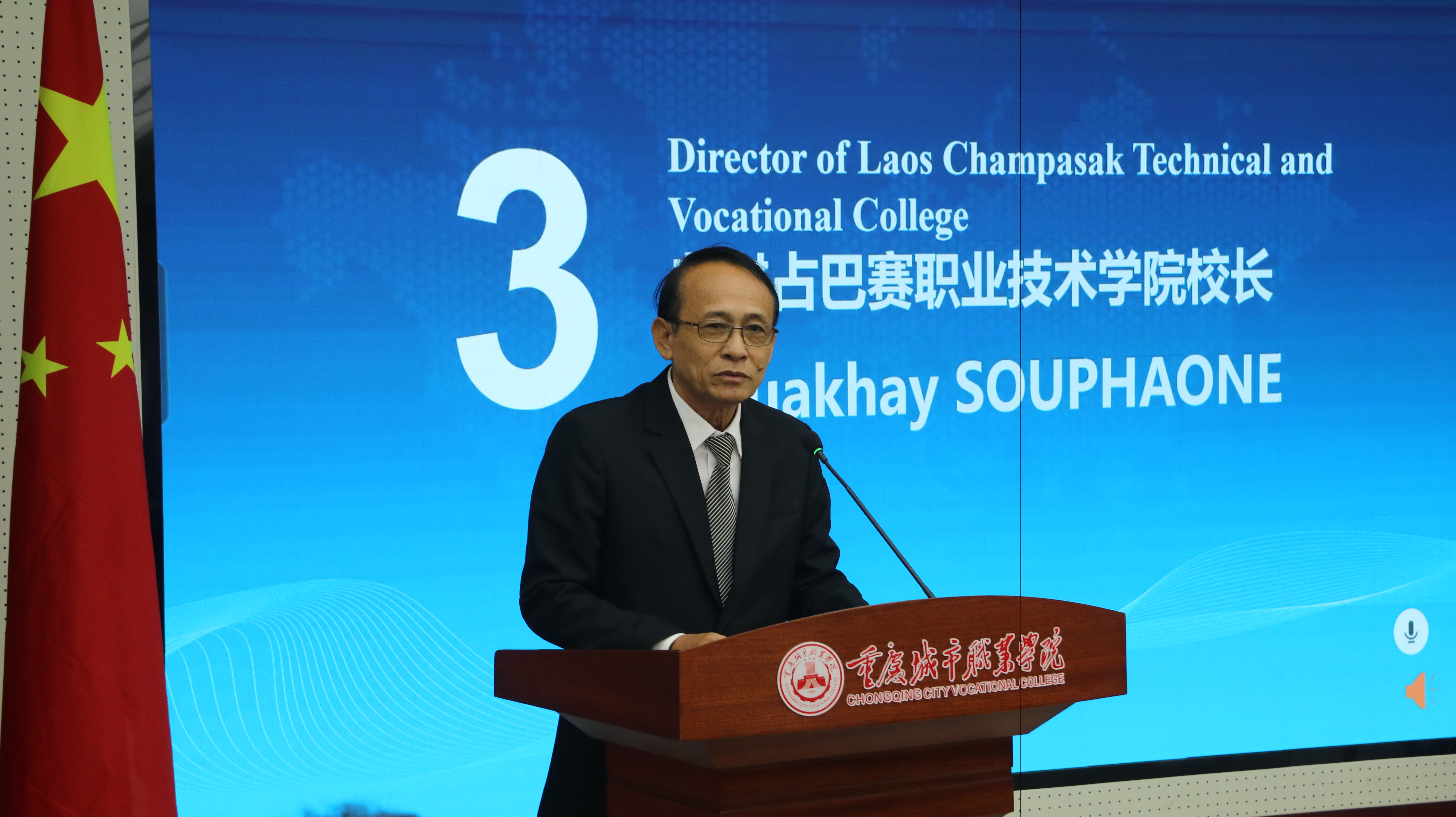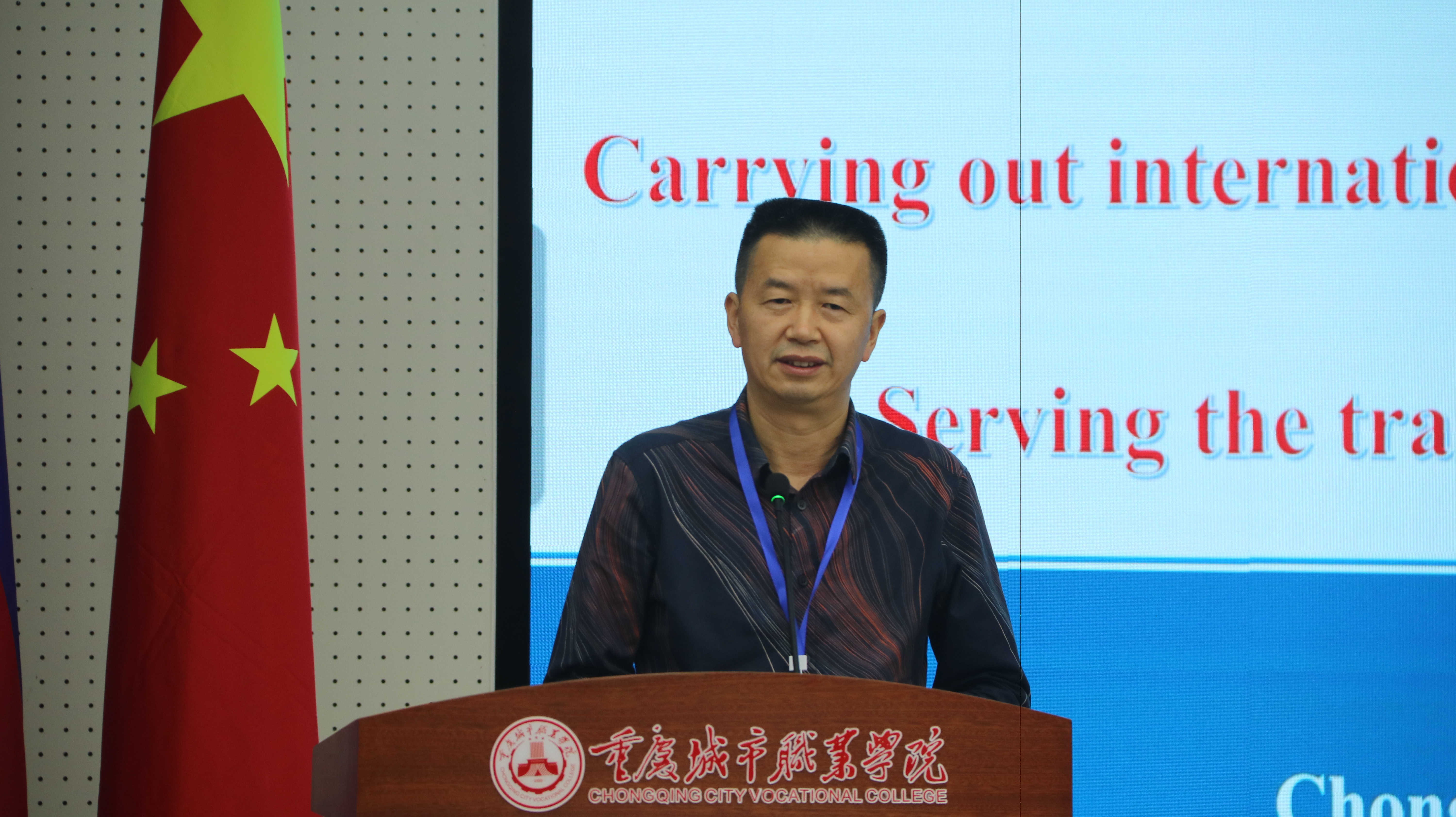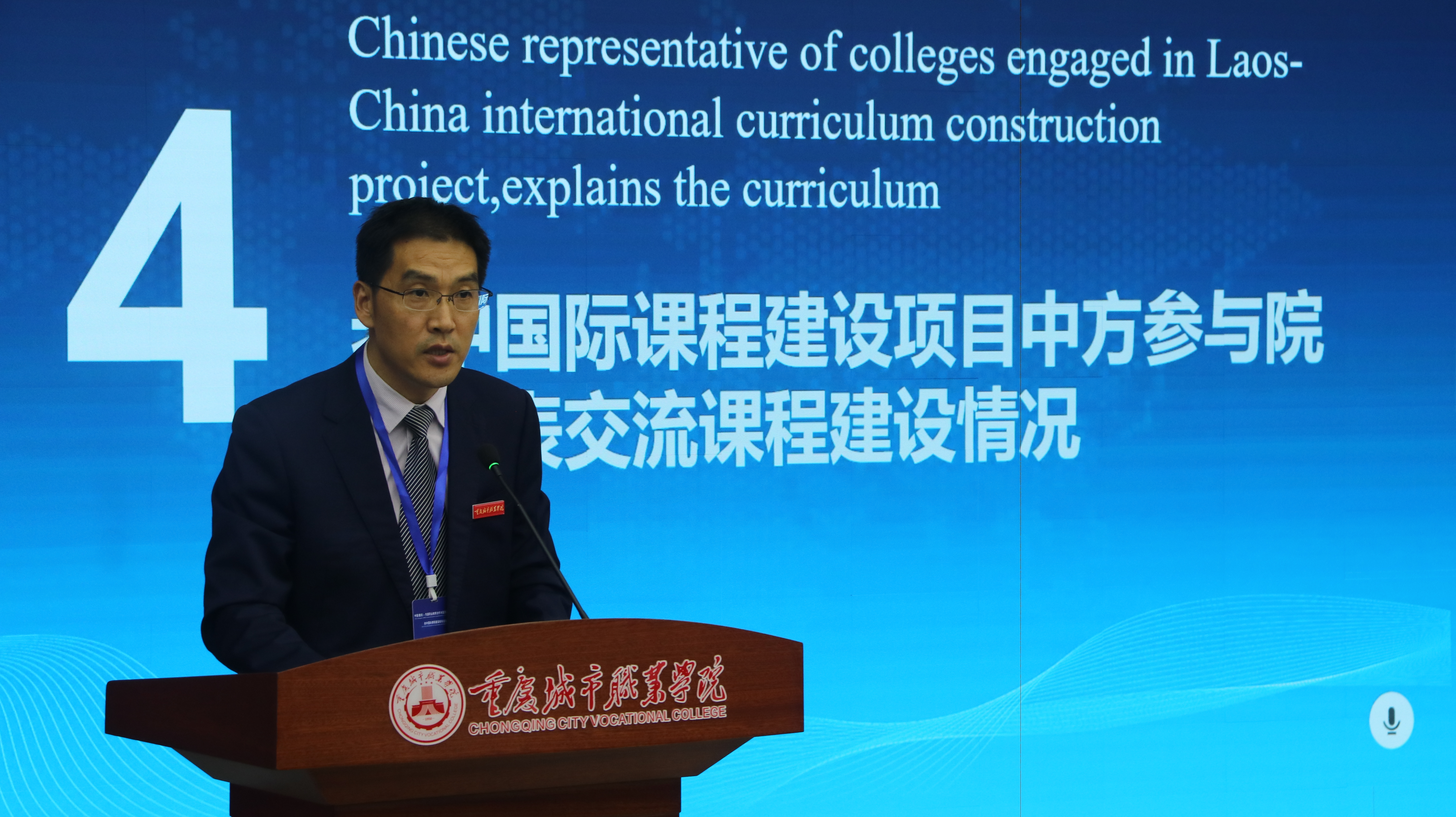 老中国际课程建设项目专家组的专家代表、永川职教中心校长孔令勇介绍专家组工作情况。他表示,将持续沟通、包容并蓄,坚持标准,高屋建瓴,提升团队,携手共进,高质量推进老中国际化课程建设项目,充分发挥职业教育的支撑、引领、联通作用,为共建“一带一路”提供坚实人才和创新支撑。