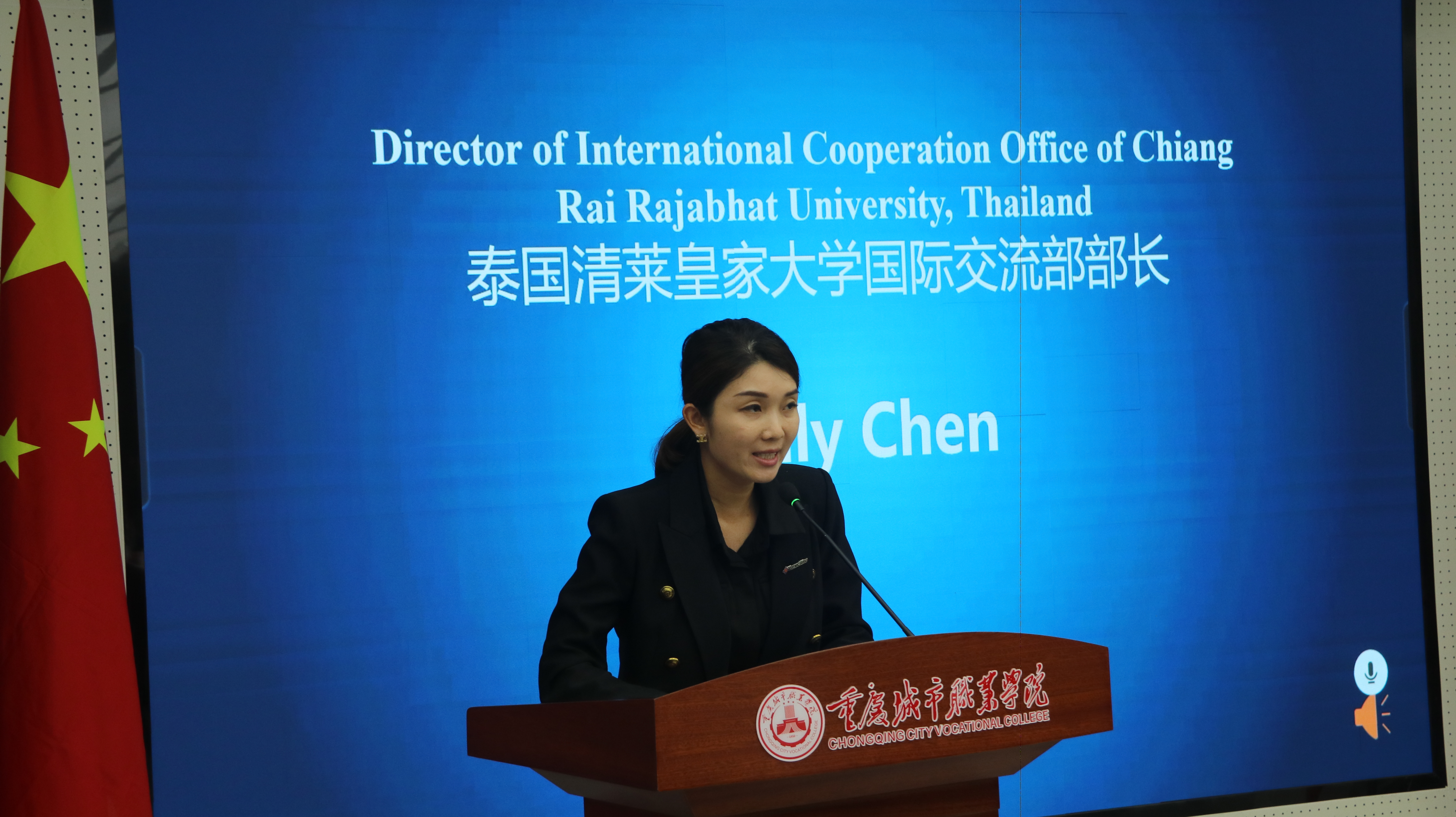 泰国清莱皇家大学国际交流部部长Emily Chen就东盟国际课程与资源建设主题进行交流。她表示,泰国清莱皇家大学愿意为中国西部职业教育基地的高质量建设和国际交流与合作作出贡献,为学生和社会创造更多机会和价值。