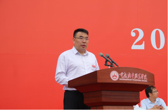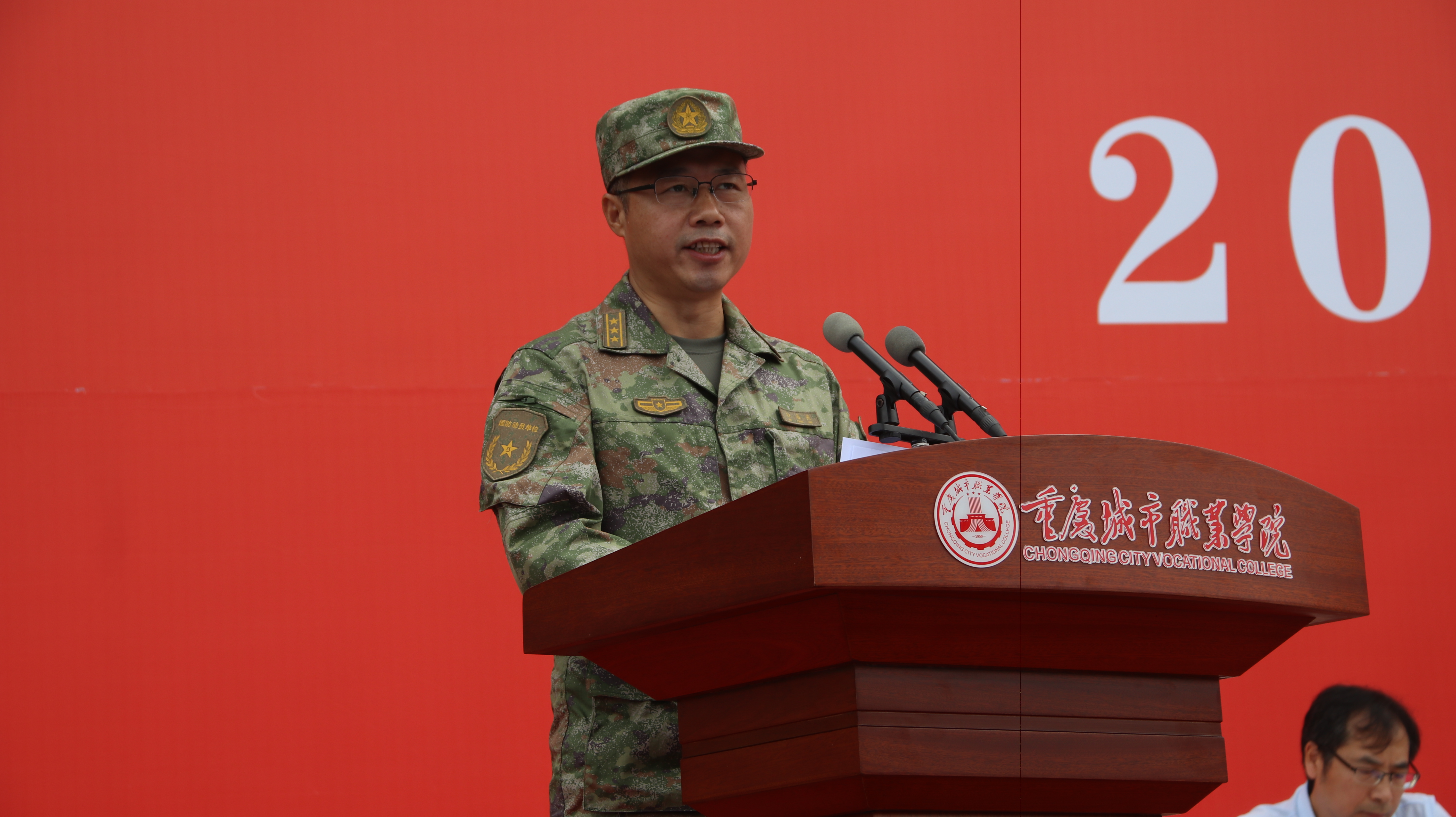 永川区武装部副部长白春燕上校代表永川区人民武装部向承担军训任务的教官表示衷心感谢,向获得表彰的同学、教官、连队表示热烈的祝贺。他指出,经过为期两周的训练,同学们的军事素养、身体素质和精神面貌发生可喜的变化,取得了预期成效。他希望同学们要巩固拓展军训成果,厚植家国情怀,把青春梦与中国梦有机融合,用青春梦共筑中国梦,在实现中国梦中成就青春梦;赓续红色血脉,弘扬党的优良传统和作风,勇担时代重任,奋进新征程,建功新时代;传承红色匠心,锤炼过硬技能本领,立志成为能工巧匠、大国工匠,争当技能成才、技能报国的新时代好青年。