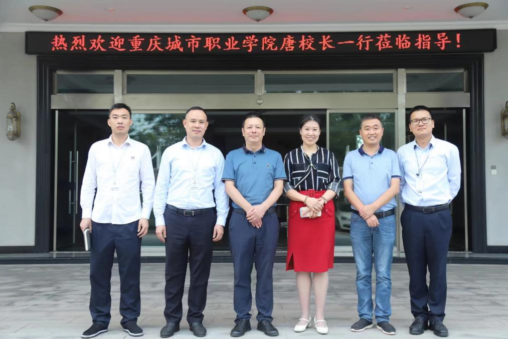 校长唐玉林带队走访公元管道(重庆)有限公司洽谈交流校企合作事宜。公元管道(重庆)有限公司总经理、永川区人大代表徐建华,人力资源部经理徐健、合作部经理丁仁平等陪同。