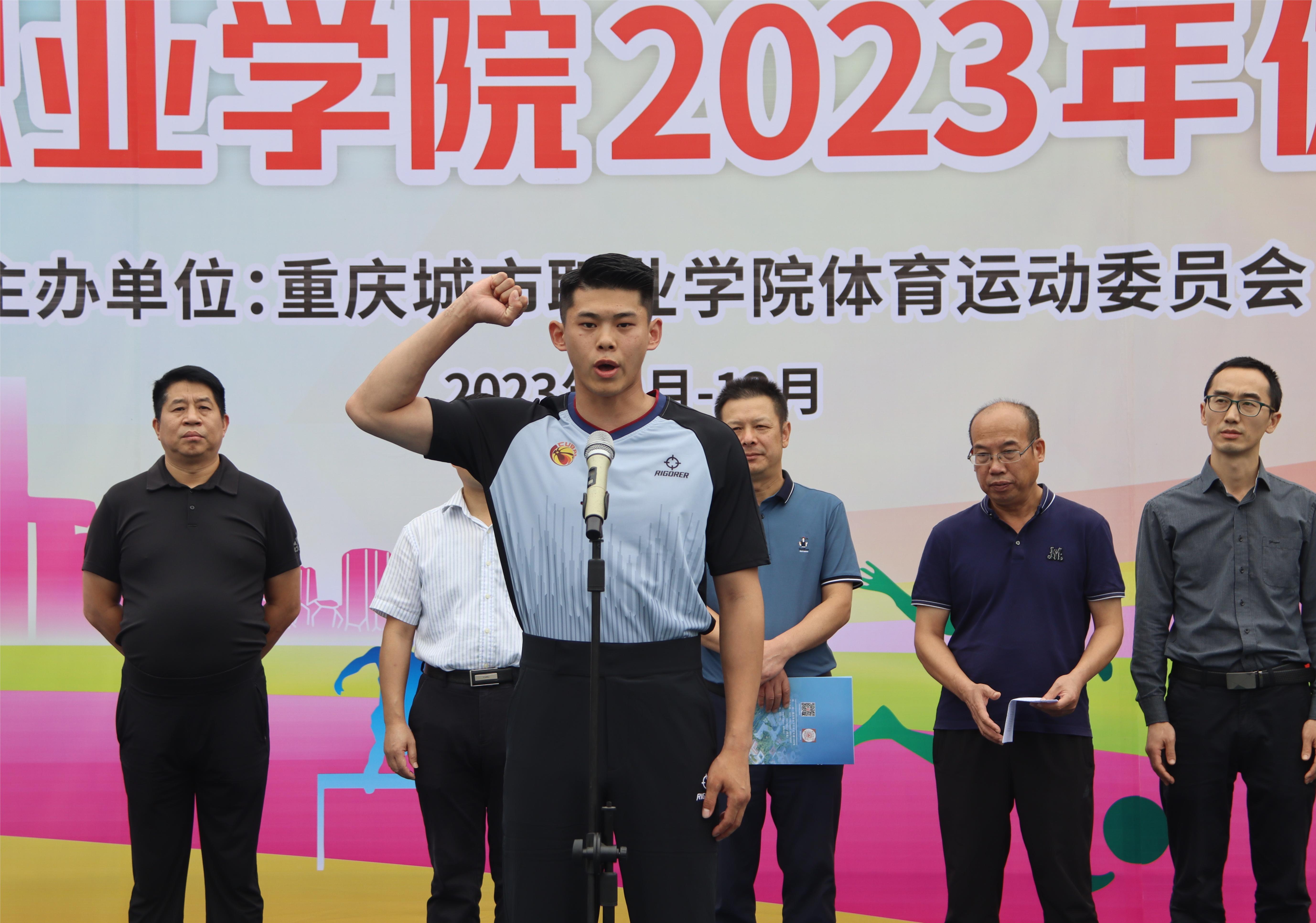 10月18日,做爱视频 2023年体育文化节在田径场开幕。做爱视频 党委书记张绍荣,党委副书记、校长唐玉林,校领导朱传书、陈志军,党政办公室、党委宣传部、党委学生工作部、校工会、通识教育学院、各二级学院负责人,运动员代表参加仪式。