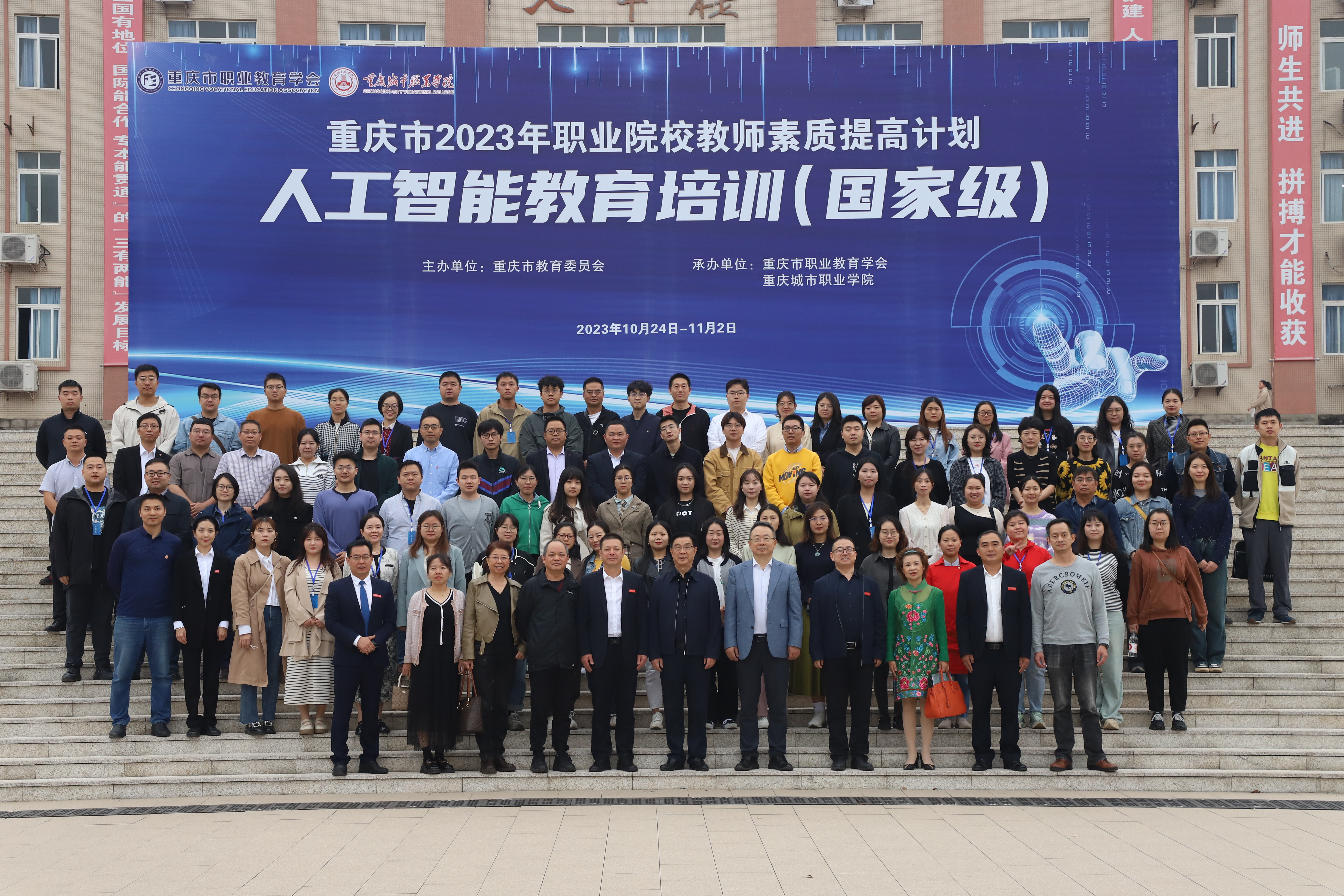 据悉,重庆市2023年职业院校教师素质提高计划人工智能教育培训(国家级)由重庆市教育委员会主办,重庆市职业教育学会和做爱视频 联合承办,培训时间为10月24日至11月2日,为期10天,来自全市职业做爱视频 81名业务骨干参加培训。