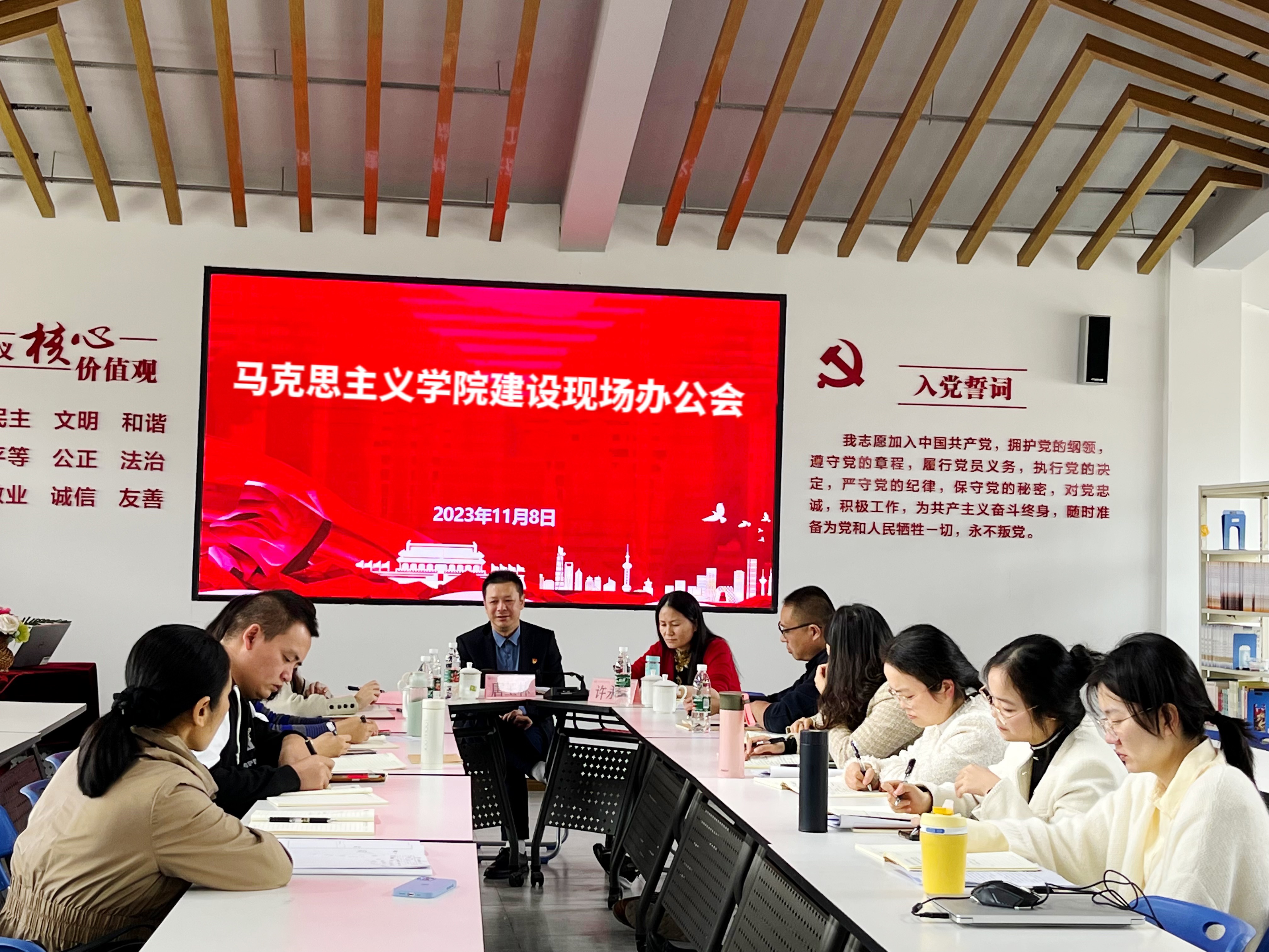 党委副书记、校长唐玉林参加马克思主义学院建设现场办公会,指导马克思主义学院建设工作。马克思主义学院院长许永莉主持会议,思政课教师参加会议。