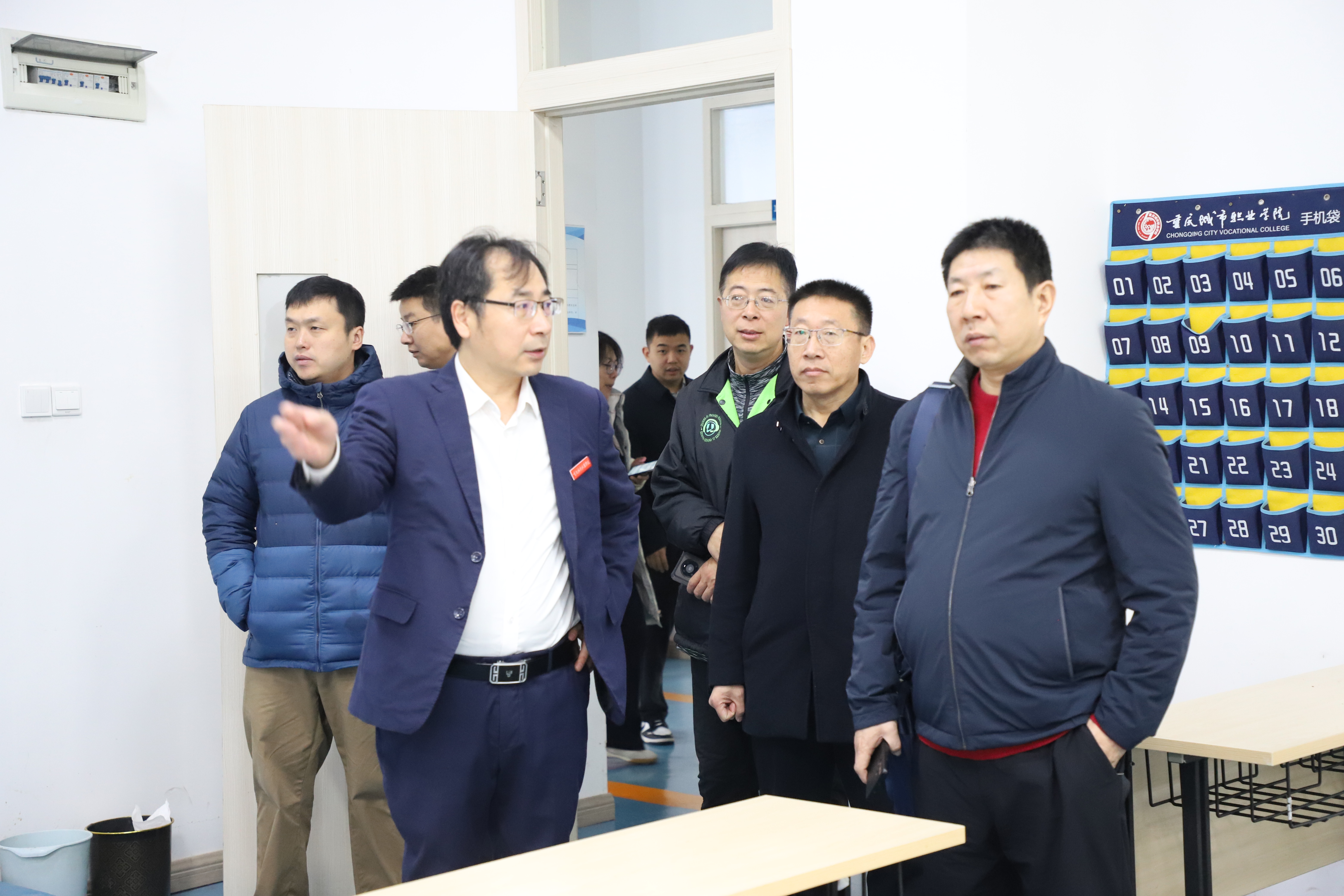 11月15日上午,河北省保定文化发展集团总经理助理、综合管理部部长张平,保定文发数科教育科技公司总经理邵旺,保定市财政局教科文处处长王志川,保定技师学院党委书记、校长崔欣,副校长梁军,中德职业教育产教融合联盟中方秘书长刘宇一行6人到校调研。
