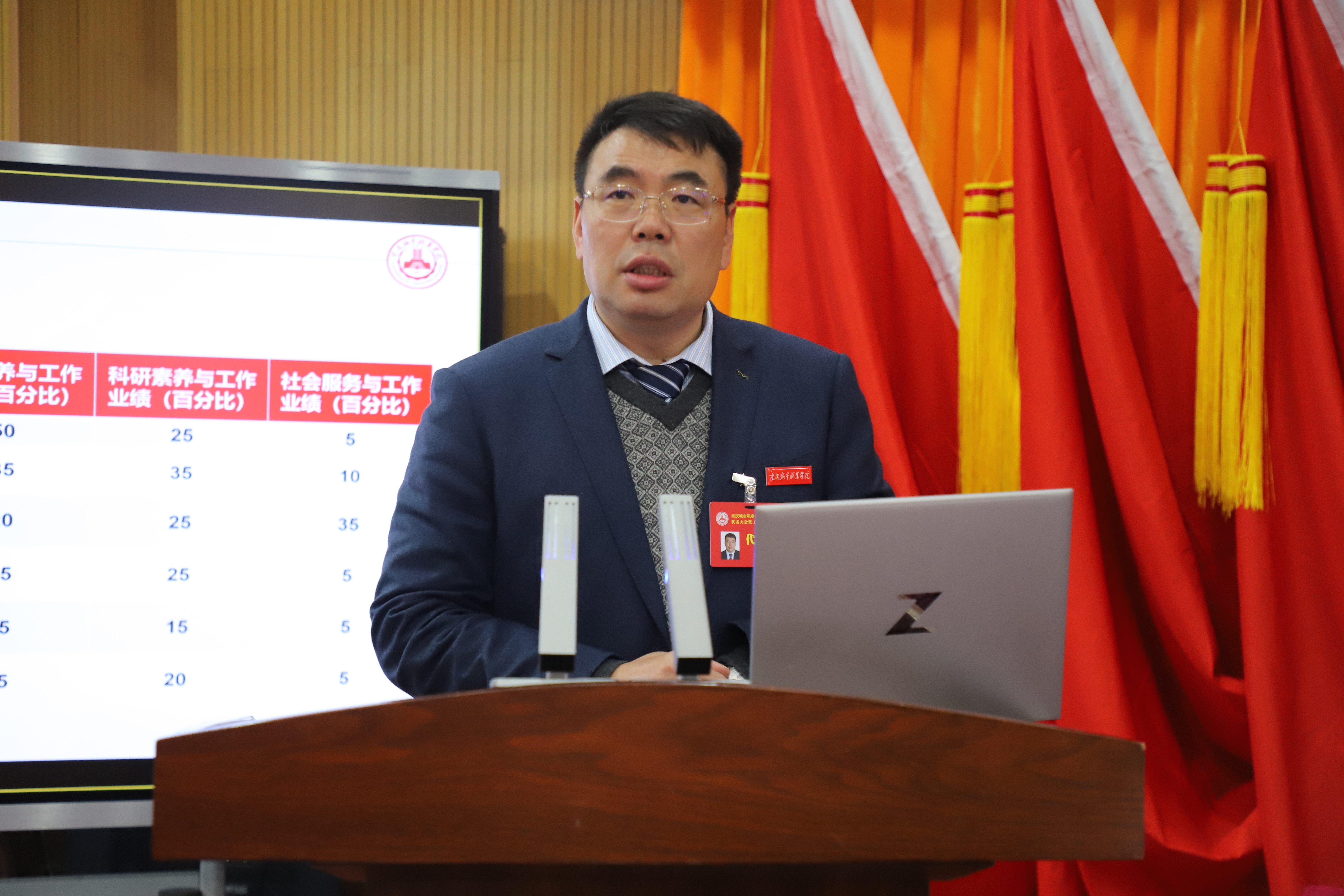 党委委员、副校长刘仲全就《做爱视频 职称评审办法(修订稿)》《做爱视频 岗位设置和聘用管理办法(修订稿)》作了解读和说明。