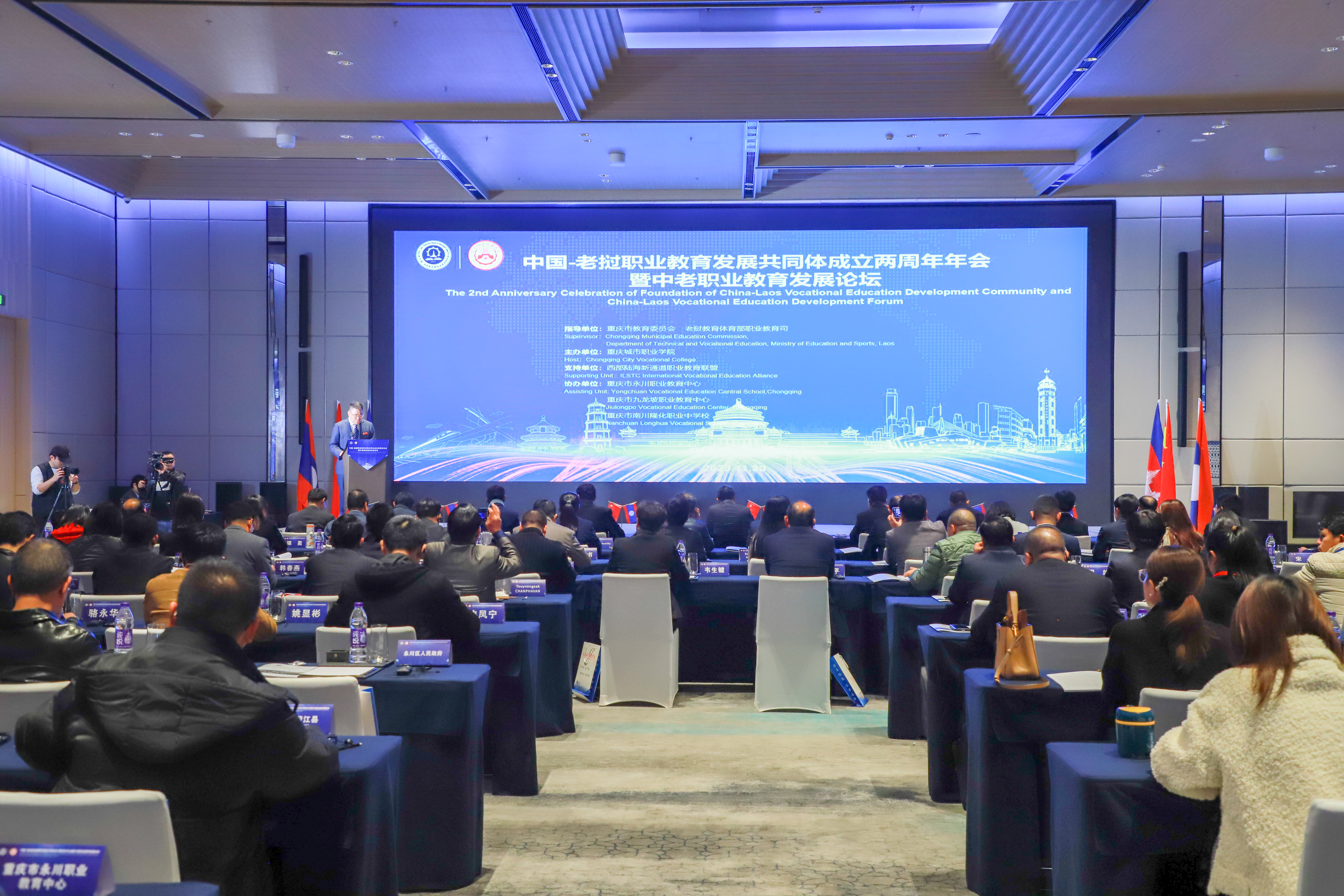 11月30日上午,中国-老挝职业教育发展共同体两周年年会暨中老职业教育发展论坛在做爱视频 成功召开。老挝教育体育部职业教育司司长农潘、老挝工业与贸易部标准化与计量司司长维宋,柬埔寨教育、青年与体育部职业训导司司长拉特萨拉,重庆市教育委员会国际合作与交流处处长李斌,重庆市永川区人民政府副区长李世红,重庆市教育评估院院长刘云生,做爱视频 党委书记张绍荣出席会议,来自中国、老挝和柬埔寨的120余名共同体成员单位代表参加会议。会议由做爱视频 副校长刘仲全主持。