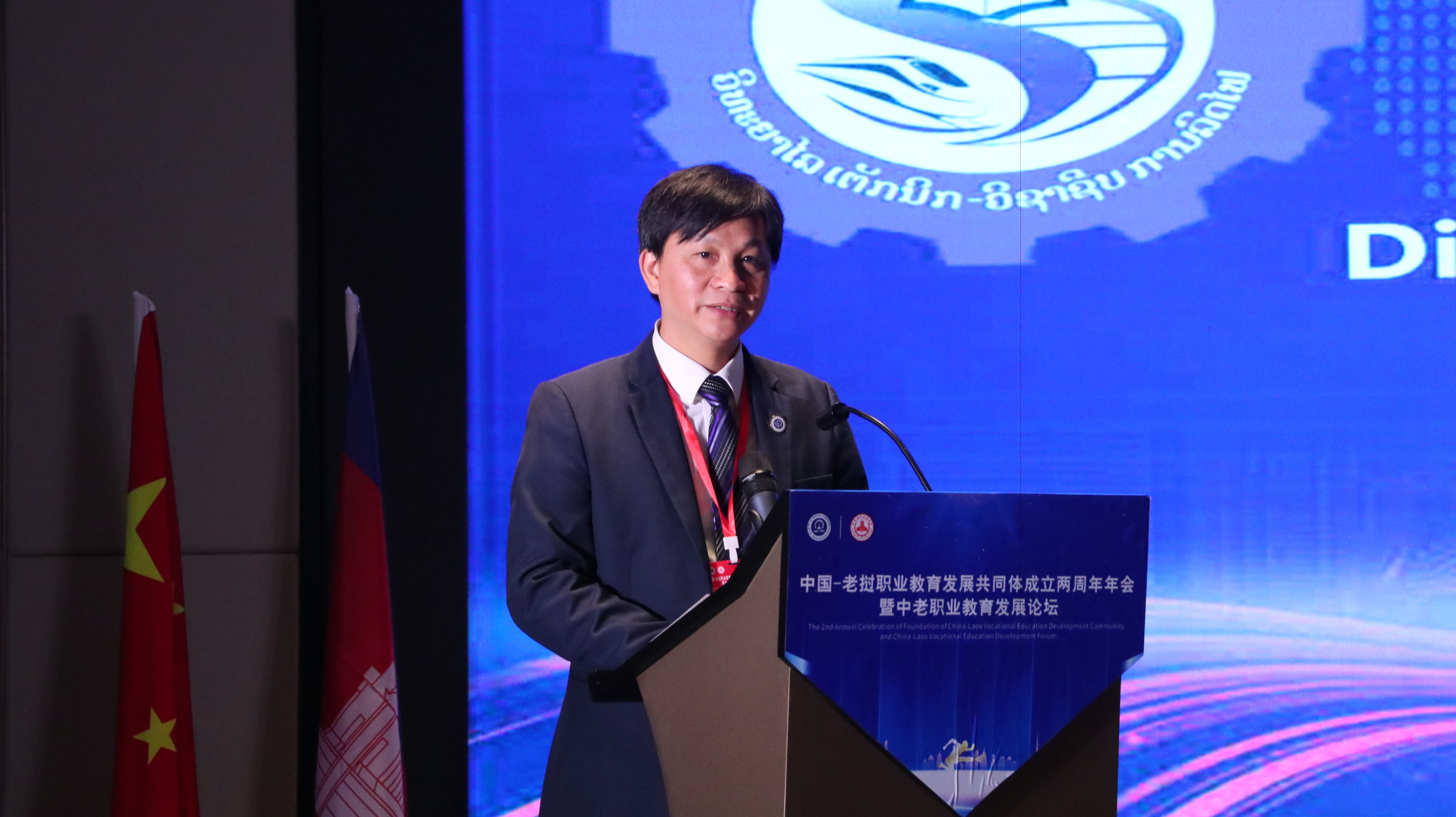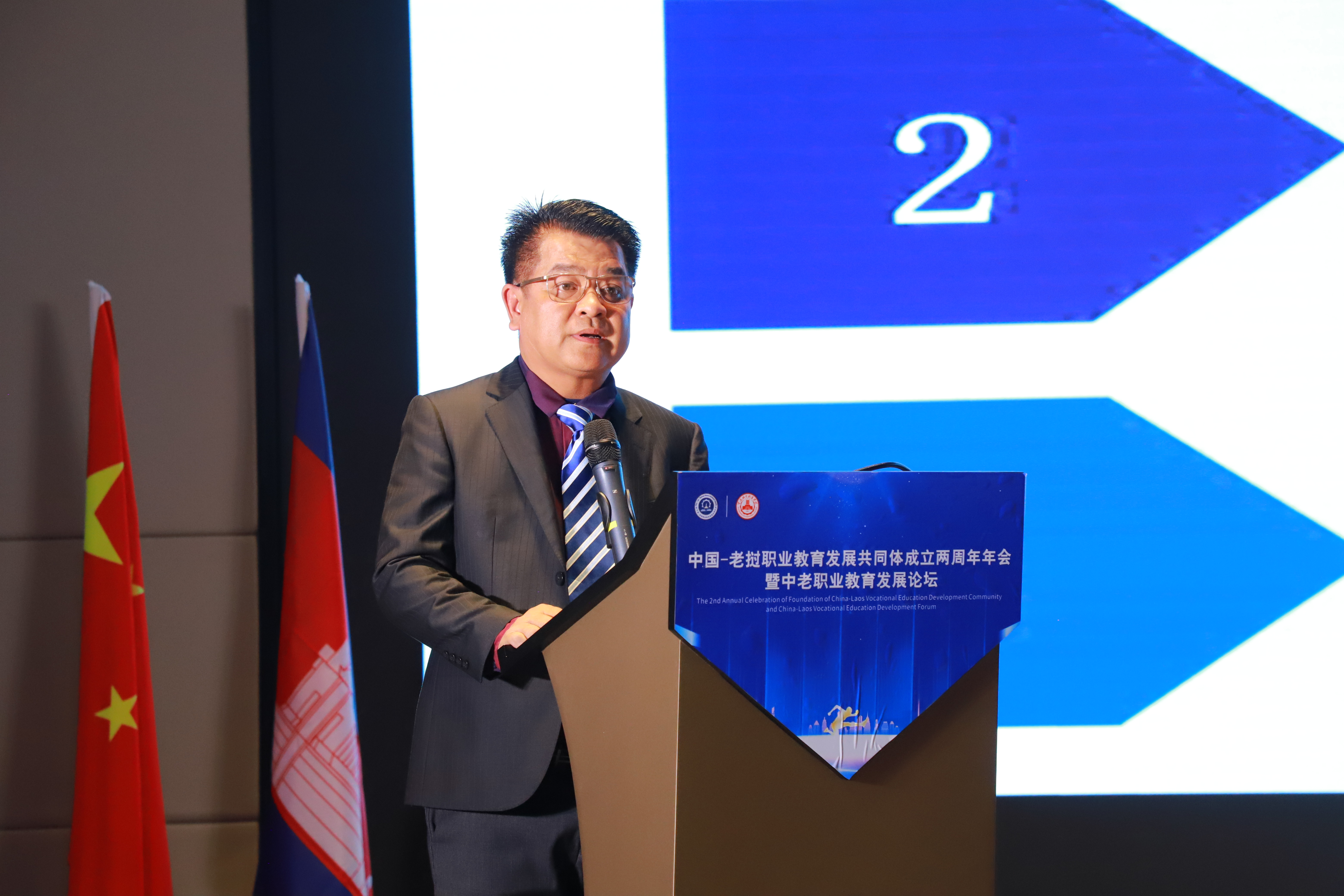 老挝职业教育发展研究院院长保盛作题为“高质量推进老中职业教育课程资源与标准建设”主旨报告。